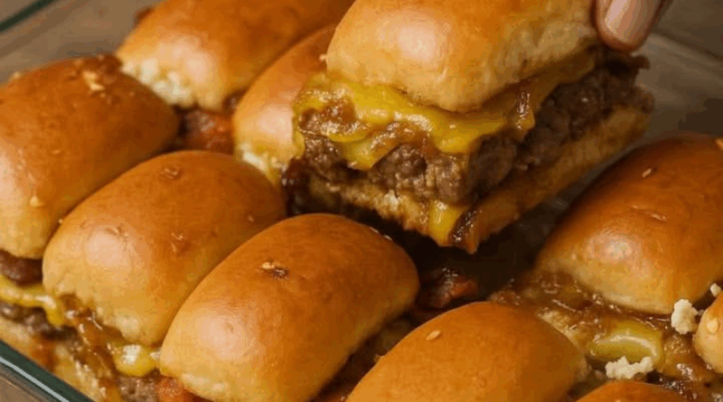 A base são bisnaguinhas (ou pão de leite), que seguram bem o recheio e ficam douradas e crocantes por cima, graças a uma mistura simples de manteiga com alho pincelada antes de ir ao forno. O recheio é um show à parte: carne moída suculenta com cheddar derretido, bacon que estala na boca e a doçura da cebola caramelizada equilibrando tudo.