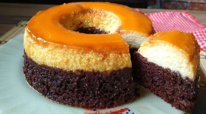 “Dois clássicos em um só: bolo + pudim = sucesso garantido! Já experimentou essa maravilha?”