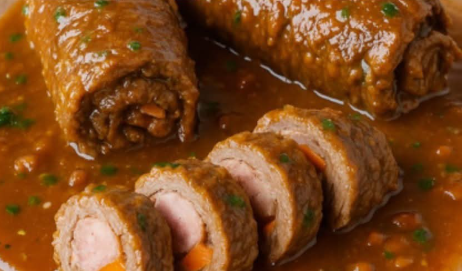 O Bife à Rolê é uma daquelas receitas tradicionais que nunca saem de moda. Seu aroma marcante e o visual encantador fazem qualquer refeição parecer especial. Trata-se de bifes finos e bem temperados, recheados com ingredientes suculentos, enrolados e cozidos lentamente em um molho rico e saboroso. Um prato que combina simplicidade e sofisticação, perfeito para surpreender a família ou encantar convidados em um almoço de domingo.