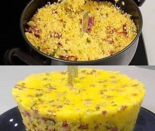 Feito com flocos de milho bem hidratados, bacon douradinho, carne seca suculenta e ovos saborosos, este cuscuz é uma explosão de aromas e texturas. É o tipo de prato que agrada em qualquer ocasião — seja no almoço de domingo, no jantar da família ou até em marmitinhas para vender. O segredo está no refogado bem temperado e na textura firme e úmida da massa, que se desmancha na boca a cada garfada.