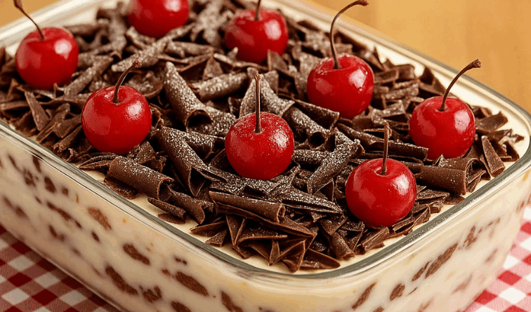 Cubra com chocolate ralado, decore com cerejas e leve à geladeira por no mínimo 3 horas.